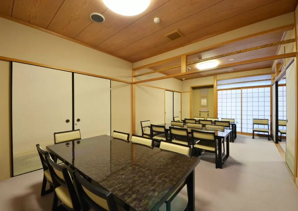 畳風の床と障子、漆調のテーブルが上品に調和し、静かに思いを語り合うのにふさわしい設えとなっております。
